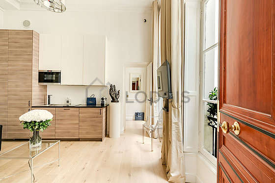 Appartement meublé à Paris d'environ 40m2, situé dans le 1er arrondissement de Paris - quartier Vendome, St Honoré, Louvre, Rivoli, dans un immeuble parisien de standing avec gardien, au 2ème étage avec ascenseur.