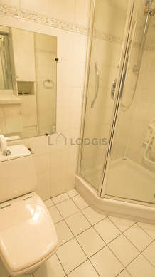 Cet appartement est équipé d'une salle de bain magnifique. Cette salle d'eau bénéficie du nécessaire pour votre bien-être au quotidien : serviettes de bain, placard, douche séparée, lavabo. Les toilettes sont séparées de la salle de bain et situées dans une pièce indépendante.