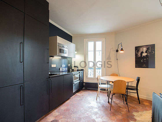 Cet appartement dispose d'une magnifique cuisine avec de la tomettes au sol et tout l'équipement indispensable pour votre quotidien : plaques de cuisson, réfrigerateur, congélateur, four, micro ondes, hotte, grille pain, cafetière, table à manger, etagère, placard, vaisselle, 4 chaise(s).