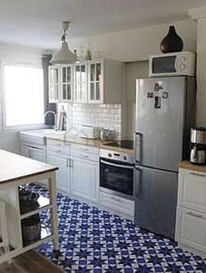 Cet appartement dispose d'une magnifique cuisine avec du carrelage au sol et tout l'équipement nécessaire pour votre quotidien : plaques de cuisson, réfrigerateur, congélateur, four, micro ondes, micro onde combiné, grille pain, table à manger, etagère, armoire, vaisselle, 1 chaise(s), mixeur / robot, poubelle, vase.