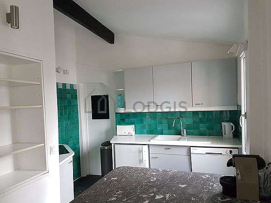 Cet appartement dispose d'une magnifique cuisine avec du carrelage au sol et tout l'équipement essentiel pour votre quotidien : plaques de cuisson, réfrigerateur, congélateur, micro onde combiné, hotte, grille pain, cafetière, etagère, placard, vaisselle, poubelle.