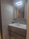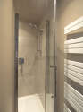 Cet appartement est équipé d'une salle de bain magnifique et très claire. Cette salle d'eau bénéficie du nécessaire pour votre bien-être au quotidien : serviettes de bain, placard, douche séparée, sèche cheveux, radiateur sèche-serviettes, ventilateur. Les toilettes sont séparées de la salle de bain et situées dans une pièce indépendante.