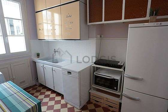 Afin de partager vos repas en toute convivialité pendant votre séjour à Paris, cet appartement dispose d'une agréable salle à manger grâce à table à manger, etagère, 4 chaise(s).