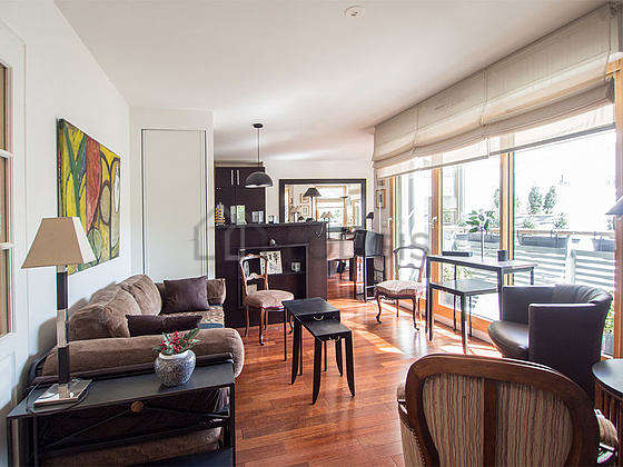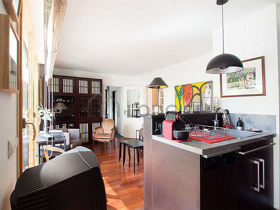 Cet appartement est composé d'un magnifique salon avec du parquet au sol et des fenêtres double vitrage. Ce salon très calme est meublé et équipé pour rendre votre séjour agréable : télé, 1 fauteuil(s), table basse, bibliothèque, etagère, buffet, 3 chaise(s), applique, tableau1 canapé(s) lit(s) de 140cm.