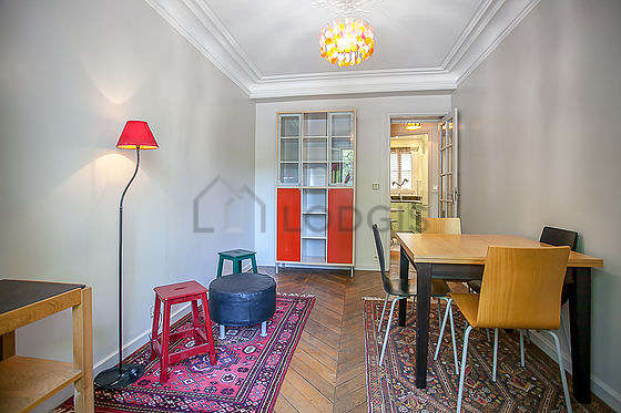 SéjourCet appartement est composé d'un charmant salon avec du parquet au sol et des fenêtres. Ce salon calme est meublé et équipé pour rendre votre séjour agréable : télé, table à manger, commode, 1 chaise(s).