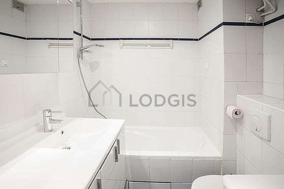 Cet appartement est équipé d'une salle de bain. Cette salle d'eau bénéficie du nécessaire pour votre bien-être au quotidien : serviettes de bain, placard, baignoire, sèche cheveux, etendoir, lavabo, miroir, porte manteaux, poubelle, radiateur sèche-serviettes. Les toilettes sont intégrées dans la salle de bain.