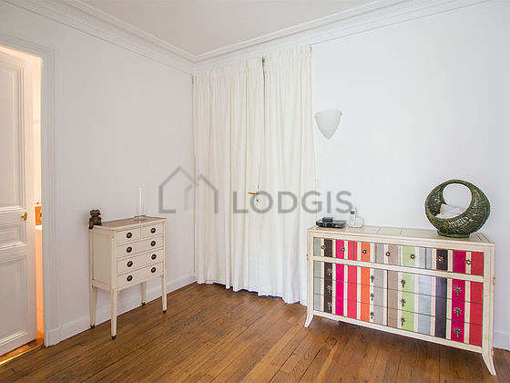 SéjourCet appartement est composé d'un beau salon avec du parquet au sol et des fenêtres. Ce salon très calme est meublé et équipé pour rendre votre séjour agréable : télé, canapé, table basse, bureau, bibliothèque, 1 chaise(s), table de chevet, lampe, tableau.