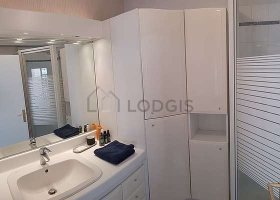 Cet appartement est équipé d'une salle de bain agréable. Cette salle d'eau bénéficie du nécessaire pour votre bien-être au quotidien : serviettes de bain, etagère, armoire, douche séparée, lavabo. Les toilettes sont séparées de la salle de bain et situées dans une pièce indépendante.