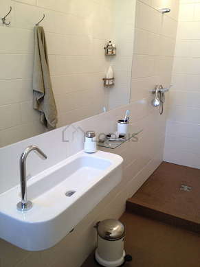 Cet appartement est équipé d'une salle de bain agréable. Cette salle d'eau bénéficie du nécessaire pour votre bien-être au quotidien : serviettes de bain, armoire, douche séparée, sèche cheveux, lavabo, lave main, porte serviettes. Les toilettes sont intégrées dans la salle de bain.