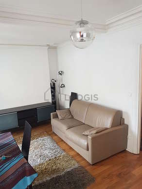 Cet appartement est composé d'un séduisant salon avec du parquet au sol et des fenêtres double vitrage. Ce salon calme est meublé et équipé pour rendre votre séjour agréable : canapé, table à manger, bureau, cheminée, 1 chaise(s), console, etendoir, lampadaire sur pied, tapis.