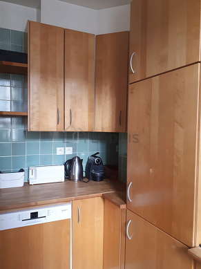 Cet appartement dispose d'une magnifique cuisine et tout l'équipement nécessaire pour votre quotidien : plaques de cuisson, réfrigerateur, congélateur, four, hotte, grille pain, cafetière, etagère, armoire, placard, vaisselle.