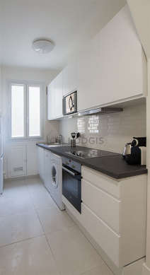 Cet appartement dispose d'une magnifique cuisine sur la entrée avec du carrelage au sol et tout l'équipement indispensable pour votre quotidien : plaques de cuisson, réfrigerateur, congélateur, four, micro ondes, hotte, grille pain, bouilloire électrique, cafetière, placard, vaisselle.