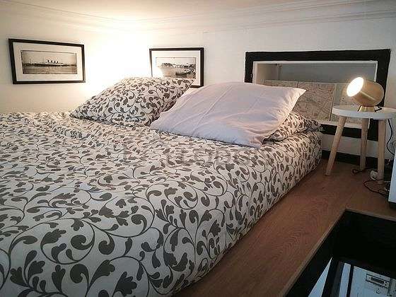 Grâce à une belle hauteur sous plafond, une magnifique mezzanine a pu être installée dans cet appartement , vous offrant ainsi une vraie pièce supplémentaire équipée de draps, couettes, table de chevet.