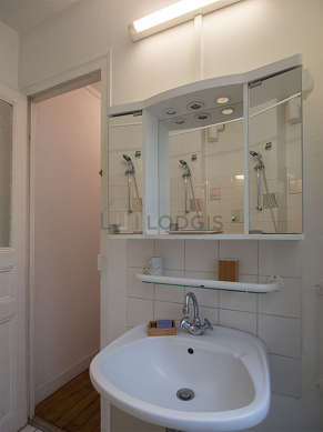 Cet appartement est équipé d'une salle de bain très claire avec des fenêtres. Cette salle d'eau bénéficie du nécessaire pour votre bien-être au quotidien : serviettes de bain, placard, baignoire, sèche cheveux, lavabo. Les toilettes sont séparées de la salle de bain et situées dans une pièce indépendante.