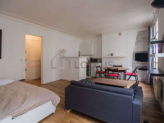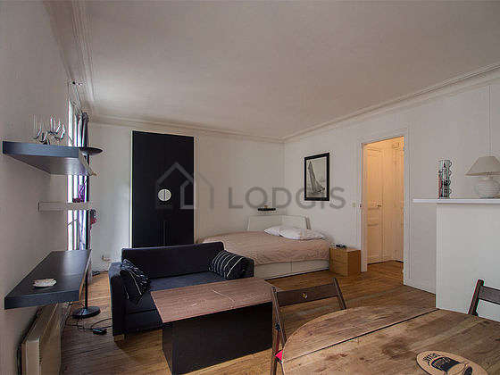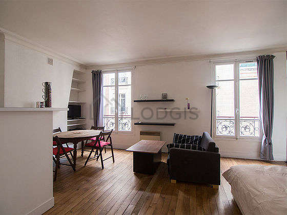 Cet appartement est composé d'un séduisant salon avec du parquet au sol vue sur rue. Ce salon calme est meublé et équipé pour rendre votre séjour agréable : draps, couettes, canapé, table à manger, table basse, penderie, etagère, armoire, vaisselle, 4 chaise(s), table de chevet1 lit(s) gigogne de 80cm, 1 canapé(s) lit(s) de 120cm.
