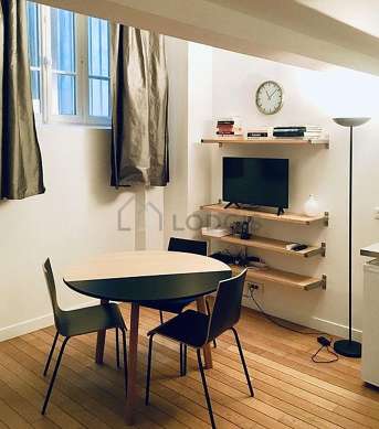 Cet appartement est composé d'un superbe salon avec du parquet au sol et des fenêtres. Ce salon très calme est meublé et équipé pour rendre votre séjour agréable : télé, table à manger, table basse, etagère, 3 chaise(s), lampadaire sur pied, rideaux1 canapé(s) lit(s) de 160cm.