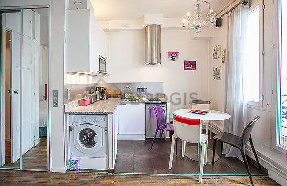 Cet appartement dispose d'une magnifique cuisine avec du carrelage au sol et tout l'équipement nécessaire pour votre quotidien : plaques de cuisson, réfrigerateur, congélateur, micro ondes, grille pain, bouilloire électrique, cafetière, vaisselle.