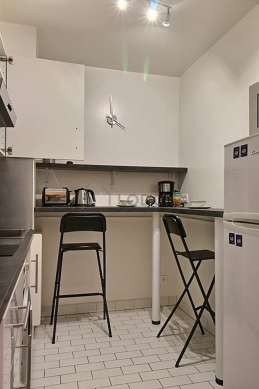 Cet appartement dispose d'une magnifique cuisine avec du carrelage au sol et tout l'équipement nécessaire pour votre quotidien : plaques de cuisson, réfrigerateur, congélateur, micro onde combiné, hotte, grille pain, cafetière, etagère, armoire, placard, vaisselle, bar, etendoir, poubelle.