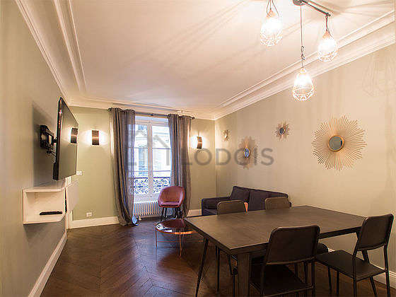 SéjourCet appartement est composé d'un magnifique salon avec du parquet au sol. Ce salon très calme est meublé et équipé pour rendre votre séjour agréable : télé, canapé, 2 fauteuil(s), table à manger, table basse, 1 chaise(s)1 canapé(s) lit(s) de 140cm.