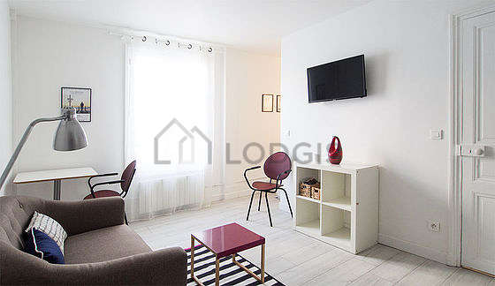 Cet appartement est composé d'un plaisant salon avec du parquet au sol et des fenêtres double vitrage et vue sur cour. Ce salon calme est meublé et équipé pour rendre votre séjour agréable : télé, canapé, table à manger, table basse, penderie, etagère, placard, 2 chaise(s).