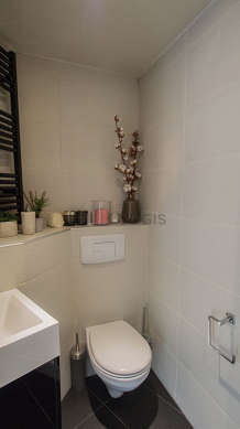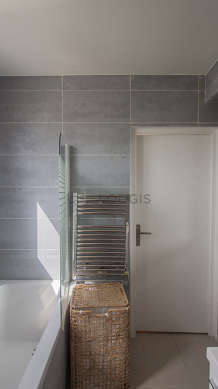 Cet appartement est équipé d'une salle de bain magnifique et très claire avec des fenêtres. Cette salle d'eau bénéficie du nécessaire pour votre bien-être au quotidien : serviettes de bain, baignoire, lavabo. Les toilettes sont intégrées dans la salle de bain.