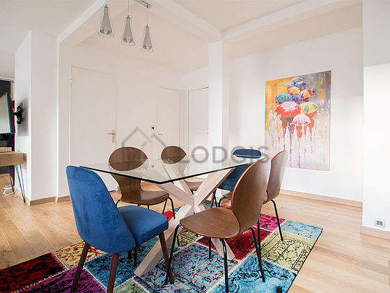 Afin de partager vos repas en toute convivialité pendant votre séjour à Paris, cet appartement dispose d'une magnifique salle à manger grâce à table à manger, buffet, 6 chaise(s).