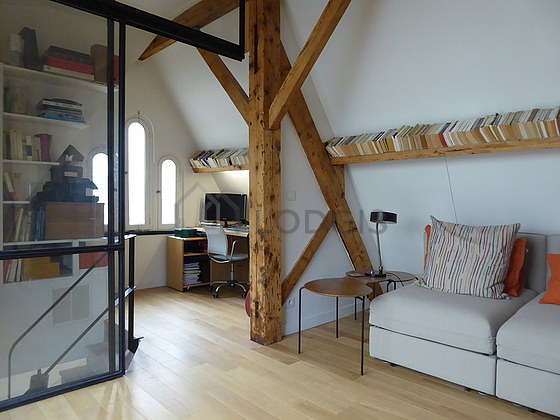 Ce loft est composé d'un magnifique salon avec du parquet au sol. Ce salon très calme est meublé et équipé pour rendre votre séjour agréable : canapé, 1 fauteuil(s), table à manger, table basse, bibliothèque, etagère, 1 chaise(s).