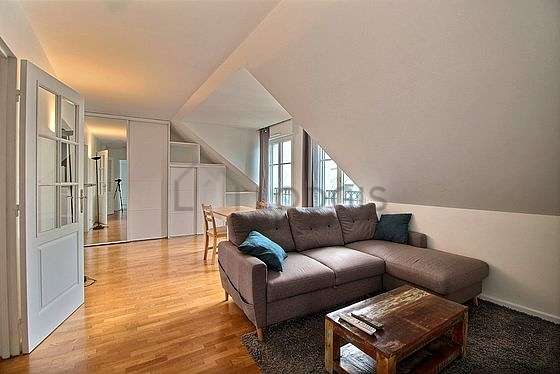 SéjourCet appartement est composé d'un superbe salon avec du parquet au sol et des fenêtres. Ce salon très calme est meublé et équipé pour rendre votre séjour agréable : télé, canapé, table à manger, table basse, penderie, placard, 1 chaise(s).