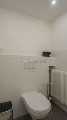 Cet appartement est équipé d'une salle de bain magnifique et claire. Cette salle d'eau bénéficie du nécessaire pour votre bien-être au quotidien : serviettes de bain, penderie, etagère, placard, douche séparée, lavabo, radiateur sèche-serviettes. Les toilettes sont intégrées dans la salle de bain.
