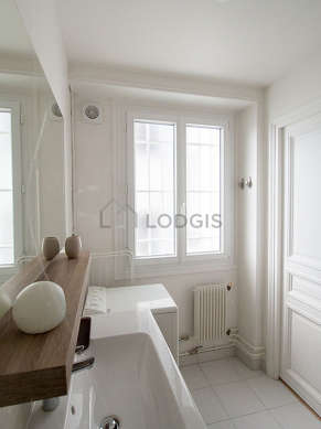 Cet appartement est équipé d'une salle de bain magnifique et claire. Cette salle d'eau bénéficie du nécessaire pour votre bien-être au quotidien : etagère, placard, lavabo, miroir, radiateur sèche-serviettes. Les toilettes sont séparées de la salle de bain et situées dans une pièce indépendante.