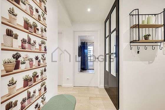 Cet appartement dispose d'une entrée équipée de penderie, etagère.