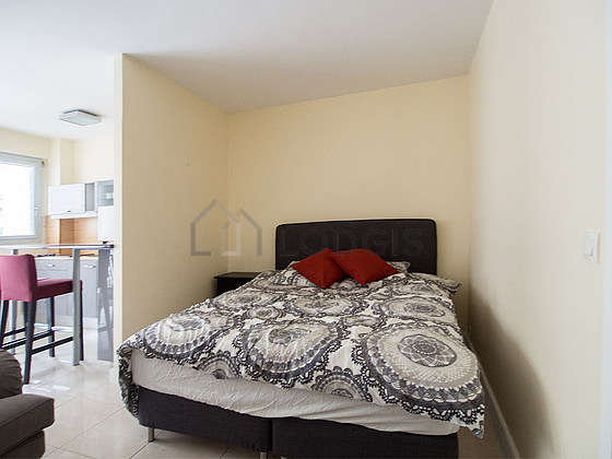 Cet appartement est composé d'un séduisant salon avec du carrelage au sol et des fenêtres et vue sur cour. Ce salon très calme est meublé et équipé pour rendre votre séjour agréable : télé, meuble tv.