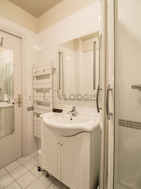 Cet appartement est équipé d'une salle de bain magnifique. Cette salle d'eau bénéficie du nécessaire pour votre bien-être au quotidien : placard, douche séparée, lavabo, radiateur sèche-serviettes. Les toilettes sont intégrées dans la salle de bain.