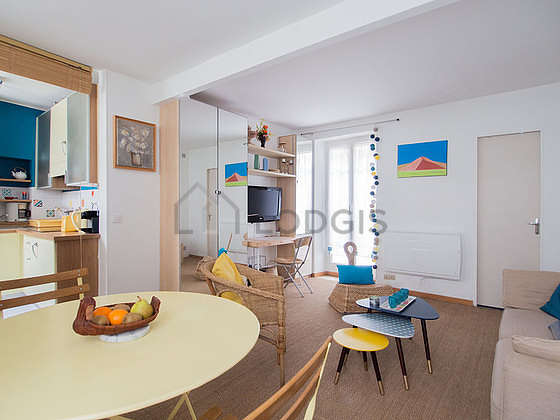 Cet appartement est composé d'un superbe salon avec du coco au sol et des fenêtres. Ce salon très calme est meublé et équipé pour rendre votre séjour agréable : télé, draps, couettes, 2 fauteuil(s), table à manger, table basse, etagère, 2 chaise(s), tableau1 canapé(s) lit(s) de 140cm.