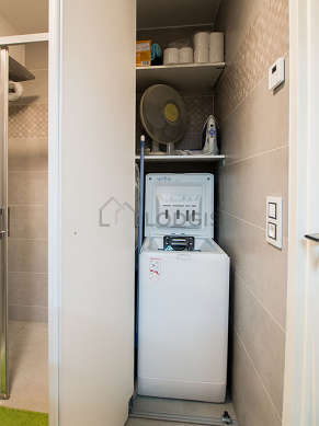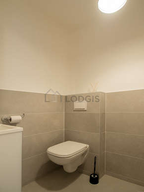 Cet appartement est équipé d'une salle de bain magnifique. Cette salle d'eau bénéficie du nécessaire pour votre bien-être au quotidien : serviettes de bain, etagère, placard, douche séparée, lavabo, radiateur sèche-serviettes. Les toilettes sont séparées de la salle de bain et situées dans une pièce indépendante.