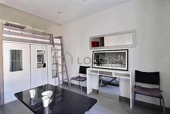 Grâce à une belle hauteur sous plafond, une belle mezzanine a pu être installée dans cet appartement , vous offrant ainsi une vraie pièce supplémentaire équipée de draps, couettes.