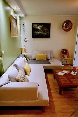 Cet appartement est composé d'un séduisant salon avec du parquet au sol et des fenêtres avec balcon et vue sur jardin. Ce salon calme est meublé et équipé pour rendre votre séjour agréable : télé, draps, couettes, canapé, table à manger, penderie, placard, 1 chaise(s)1 lit(s) armoire de 140cm.