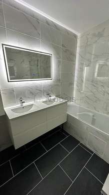Cet appartement est équipé d'une salle de bain magnifique et très claire. Cette salle d'eau bénéficie du nécessaire pour votre bien-être au quotidien : serviettes de bain, penderie, baignoire, sèche cheveux, lave main. Les toilettes sont séparées de la salle de bain et situées dans une pièce indépendante.