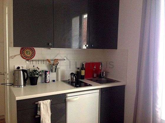 Cet appartement dispose d'une cuisine avec du parquet au sol et tout l'équipement indispensable pour votre quotidien : plaques de cuisson, réfrigerateur, congélateur, micro ondes, freezer, vaisselle.