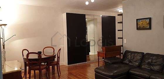 SéjourCet appartement est composé d'un séduisant salon avec du parquet au sol et des fenêtres. Ce salon est meublé et équipé pour rendre votre séjour agréable : télé, canapé, table à manger, table basse, bureau, penderie, 5 chaise(s).