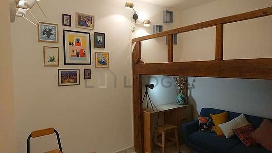 Grâce à une belle hauteur sous plafond, une belle mezzanine a pu être installée dans cet appartement , vous offrant ainsi une vraie pièce en plus équipée de armoire.