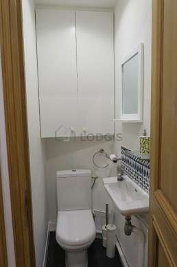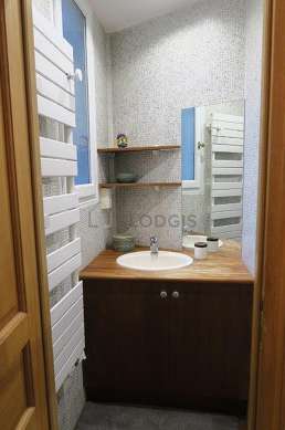 Cet appartement est équipé d'une salle de bain magnifique. Cette salle d'eau bénéficie du nécessaire pour votre bien-être au quotidien : serviettes de bain, placard, douche séparée, lavabo, radiateur sèche-serviettes. Les toilettes sont séparées de la salle de bain et situées dans une pièce indépendante.