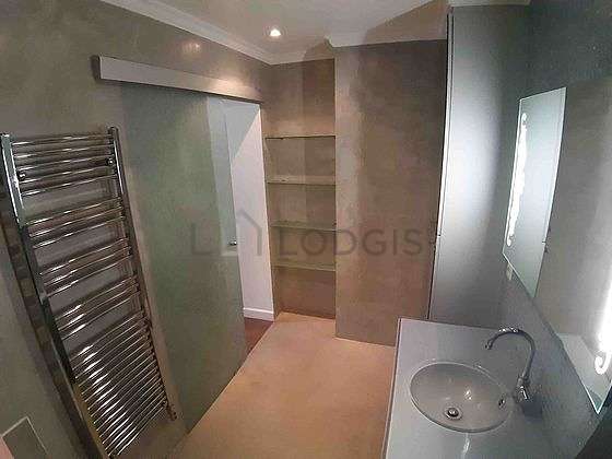 Cet appartement est équipé d'une salle de bain magnifique et très claire. Cette salle d'eau bénéficie du nécessaire pour votre bien-être au quotidien : serviettes de bain, etagère, armoire, placard, baignoire, sèche cheveux, miroir, radiateur sèche-serviettes, ventilateur. Les toilettes sont séparées de la salle de bain et situées dans une pièce indépendante.