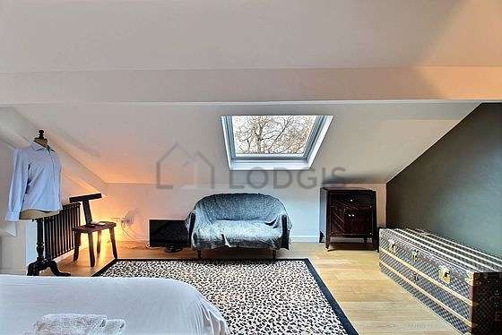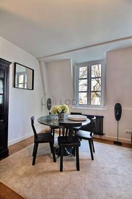 SéjourCet appartement est composé d'un beau salon avec du parquet au sol et des fenêtres. Ce salon très calme est meublé et équipé pour rendre votre séjour agréable : télé, canapé, 1 fauteuil(s), table à manger, armoire, placard, 1 chaise(s).