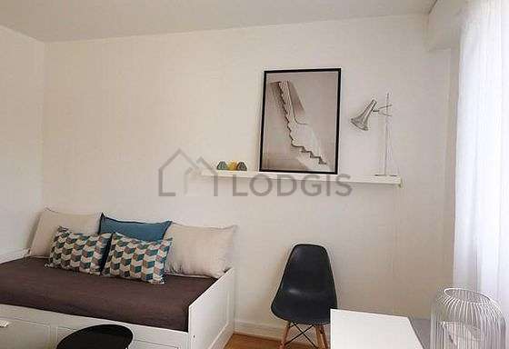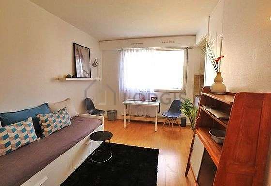 SéjourCet appartement est composé d'un beau salon avec du parquet au sol et des fenêtres. Ce salon très calme est meublé et équipé pour rendre votre séjour agréable : télé, canapé, table à manger, etagère, commode, placard, 1 chaise(s)1 canapé(s) lit(s) de 160cm.