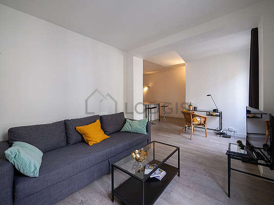 Cet appartement est composé d'un plaisant salon avec du parquet au sol vue sur rue. Ce salon calme est meublé et équipé pour rendre votre séjour agréable : télé, canapé, bureau, bibliothèque, 1 chaise(s), meuble tv1 canapé(s) lit(s) de 140cm.