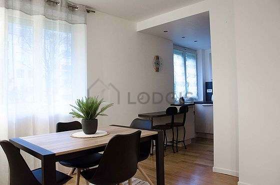 Cet appartement dispose d'une magnifique cuisine avec du parquet au sol et tout l'équipement nécessaire pour votre quotidien : plaques de cuisson, réfrigerateur, congélateur, four, micro ondes, micro onde combiné, hotte, cafetière, placard, 1 chaise(s), poubelle, ventilateur.