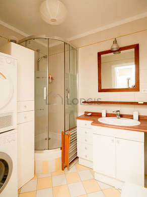 Cet appartement est équipé d'une salle de bain magnifique. Cette salle d'eau bénéficie du nécessaire pour votre bien-être au quotidien : etagère, placard, douche séparée, lavabo, miroir, radiateur sèche-serviettes. Les toilettes sont séparées de la salle de bain et situées dans une pièce indépendante.