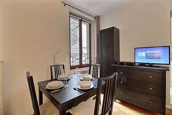 Cet appartement est composé d'un superbe salon avec du parquet au sol et des fenêtres. Ce salon très calme est meublé et équipé pour rendre votre séjour agréable : télé, draps, couettes, canapé, table à manger, commode, vaisselle, 1 chaise(s)1 canapé(s) lit(s) de 140cm.