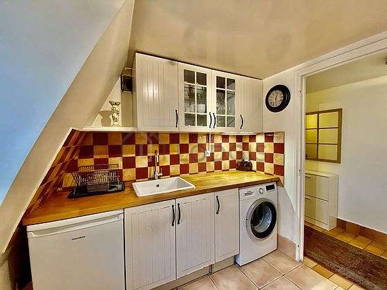 Grâce à une belle hauteur sous plafond, une magnifique mezzanine a pu être installée dans ce duplex , vous offrant ainsi une vraie pièce supplémentaire équipée de penderie, commode, placard.